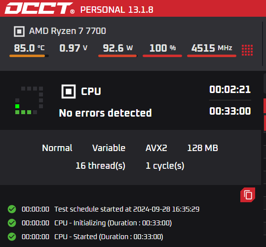тесты процессора сделаны через OCCT на максимальной нагрузке (все ядра + AVX)
