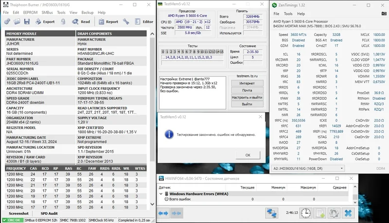 Оперативная память на Hynix с возможностью разгона в 3600 Mhz CL16, но это без гарантий. 3800 не запускаются! Кто-то говорил, что им еще Samsung чипы попадали.